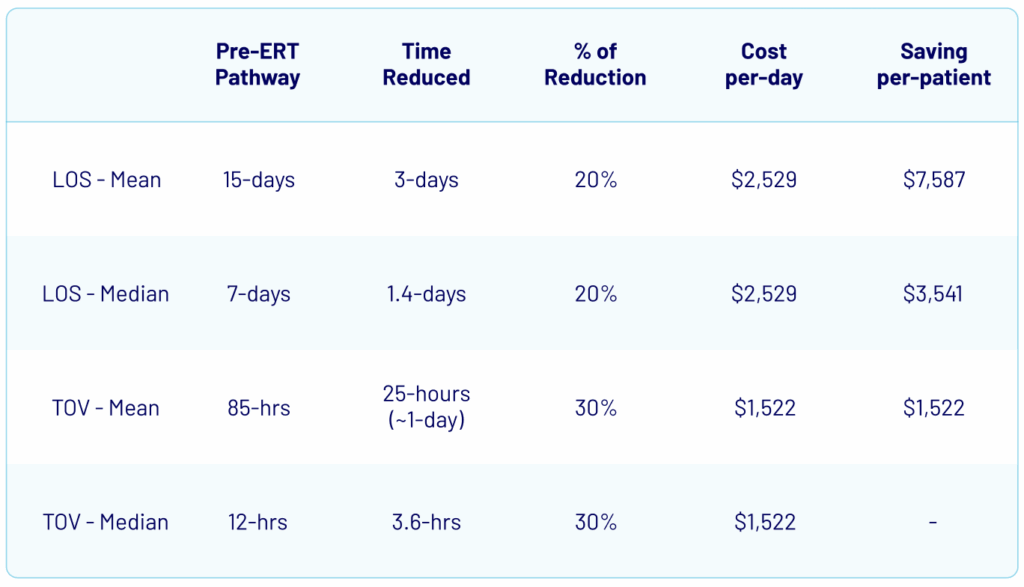 These results help us to understand the significant cost savings available from a reduction in post operative LOS. When risk-adjusted and translated into hospital cost terms, these improvements equate to estimated savings of between $3,336 and $8,671 per patient. With the average inpatient day costing around $2,383 and each additional day of mechanical ventilation adding roughly $1,500, even modest reductions in length of stay can rapidly deliver substantial financial benefit across a hospital’s annual case volume.